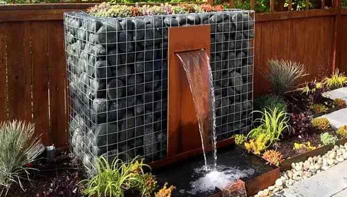 - استفاده از آبنماهای گابیونی در باغ، ویلا و فضاهای باز مشابه با توجه به طراحی و مدلی که دارند، میتواند یک انتخاب ایده آل باشد. استفاده از سنگهای طبیعی در این محصولات، به آنها جلوهای کاملاً طبیعی و جذاب میدهد.